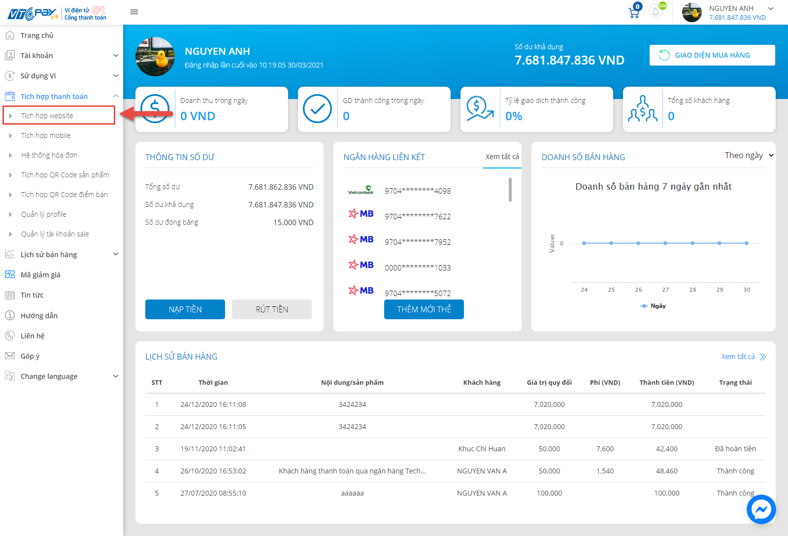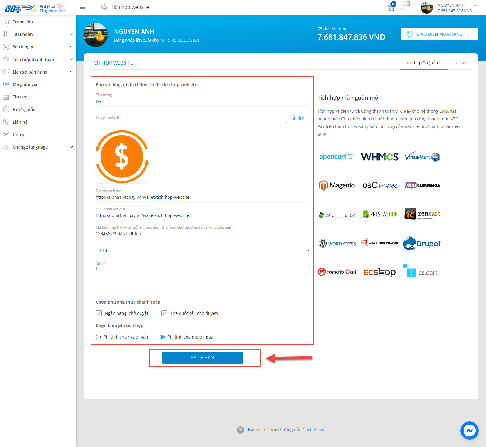 - Có tài khoản VTC Pay để tạo website tích hợp và dùng làm tài khoản hứng tiền