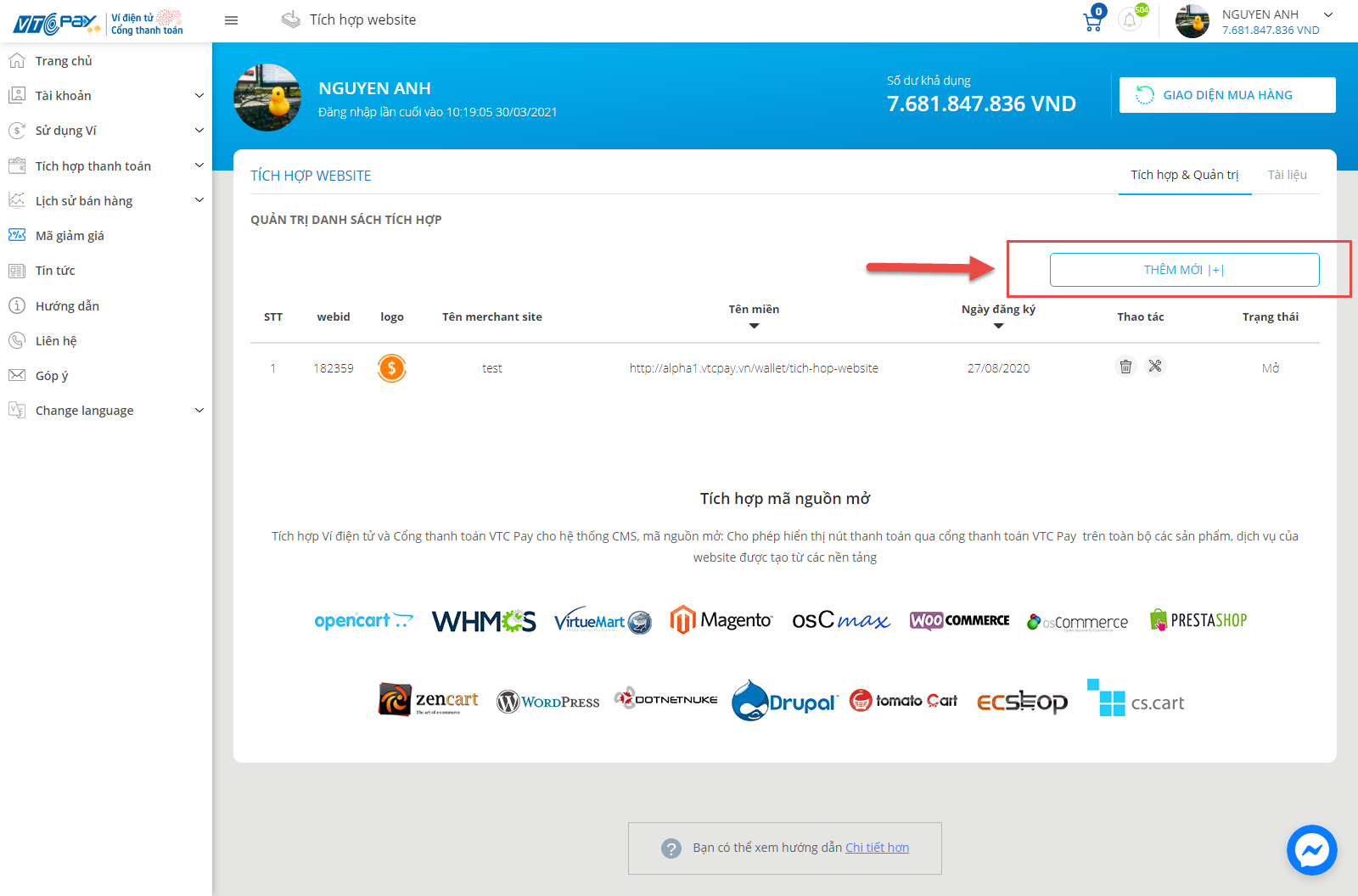 Sau đây là các bước chi tiết để Merchant có thể đăng ký thông tin tích hợp website cho mình: